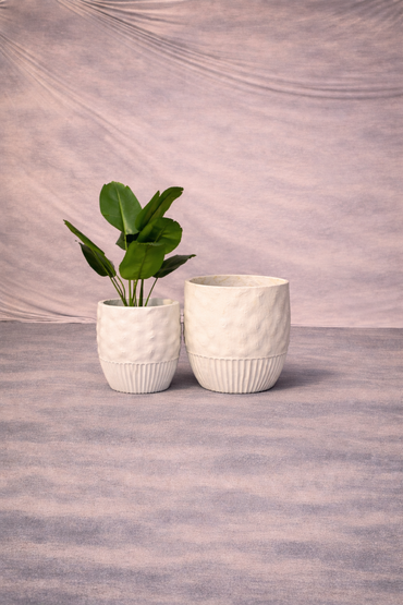 The Minimalist White Ribbed Planter & Tropical Greenery