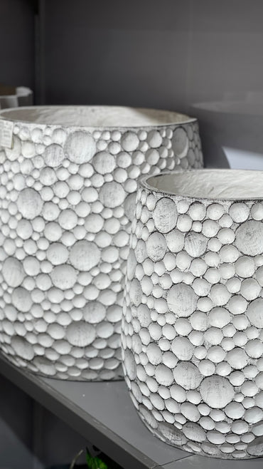 Modern Bubble-Textured Ceramic Planter – Luxury White & Grey Dotted Pot (Available in 2 Sizes)